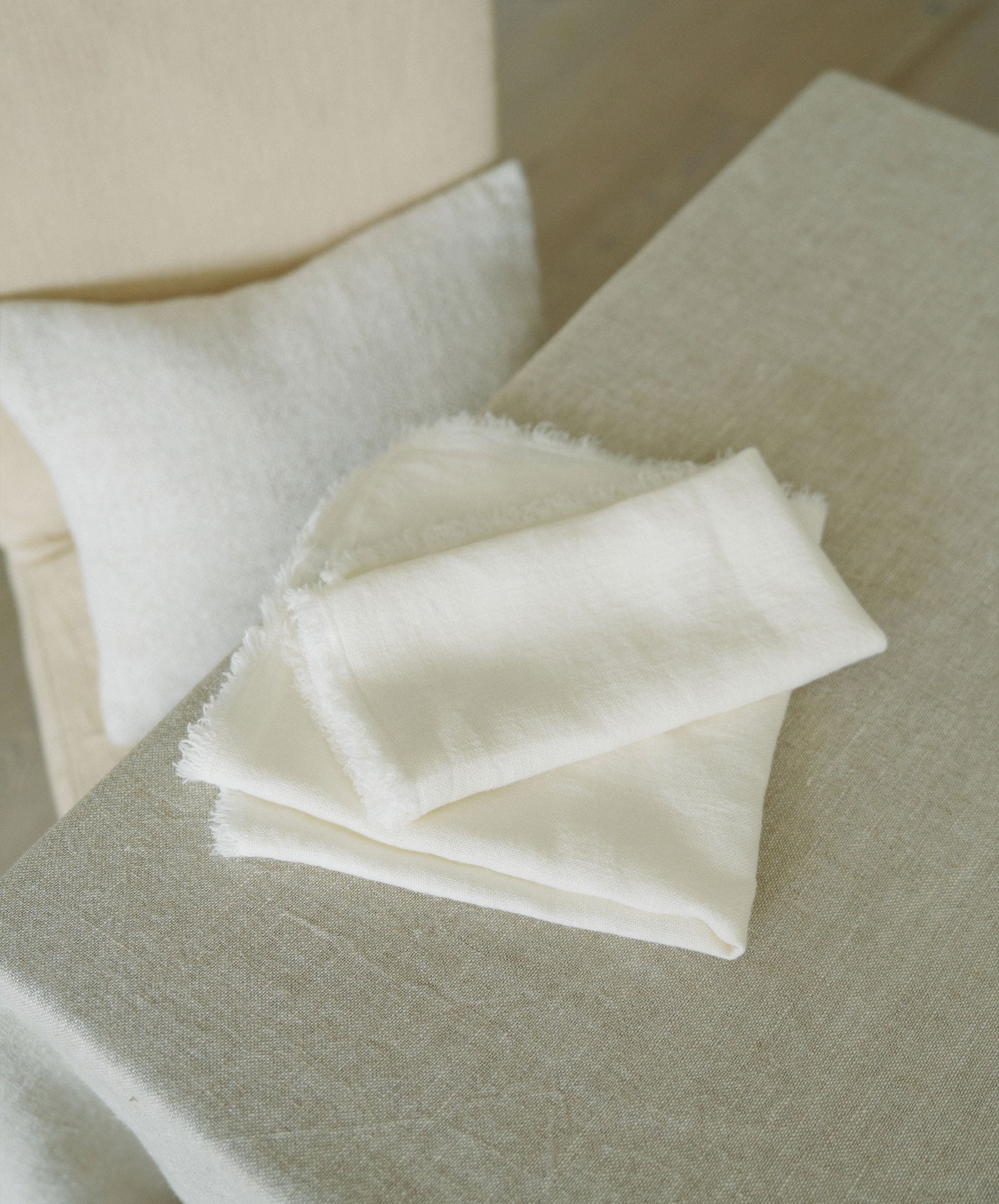 Our Fia napkins are substantial yet casual enough for everyday. Made in Portugal and woven from heavyweight linen, they feature a frayed fringe detail. Sold as a set of 6 napkins.